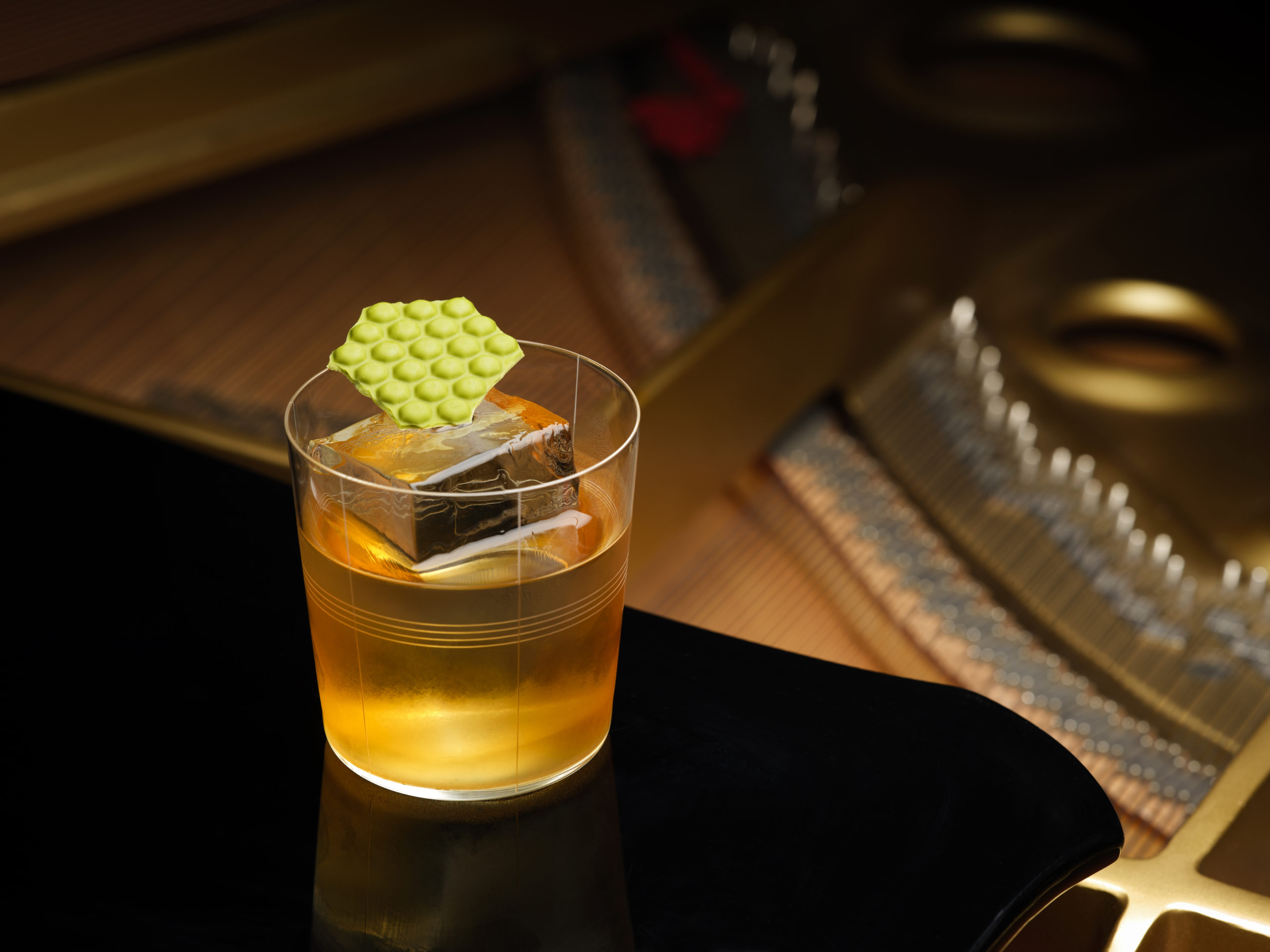 Crescent City, hommage à la Nouvelle Orleans et sa musique dont Yann qui est musicien est un grand fan, un twist de whisky sour avec du Macallan 12yo, Discarded Banana Peel rum et pandan est un des grands classiques du bar. Zingy Stardust du Purple book menu, hommage à David Bowie, un twist de gimlet avec du Bombay Premier Cru, Muscat, Kaffir, Neroli et du ‘zingy orange dust’ sourcé à partir des restes de zests d’oranges + des ‘popping candy’. Le bar s’attache également à être ‘sustainable’ en achetant en gros au plus fort de la saison puis en préparant cet ingrédient en purée par exemple pour une utilisation tout au long de l’année des fruits de saison.