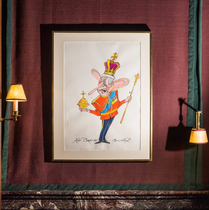 Scarfes Bar a été pensé comme le Bemelmans Bar du Carlyle, New York qui a été appelé ainsi selon l’écrivain et illustrateur autrichien Ludwig Bemelmans qui avait réglé son séjour de 18 mois à l’hôtel avec ses dessins dont il avait recouvert les murs du bar. Le Rosewood London a donc cherché un artiste représentant le British sense of humour et s’est rapproché de Gerald Scarfe. Vous avez déjà certainement été en contact avec son travail sans le savoir forcément car il est derrière les illustrations de ‘The Wall’ de Pink Floyd et le dessin animé Hercules de Disney, sans parler de toutes ses caricatures et illustrations tout au long de sa longue carrière de plus 60 ans (notamment pour Punch magazine et le Sunday Times) et il continue de travailler encore aujourd’hui… la retraite n’est pas pour tout de suite.