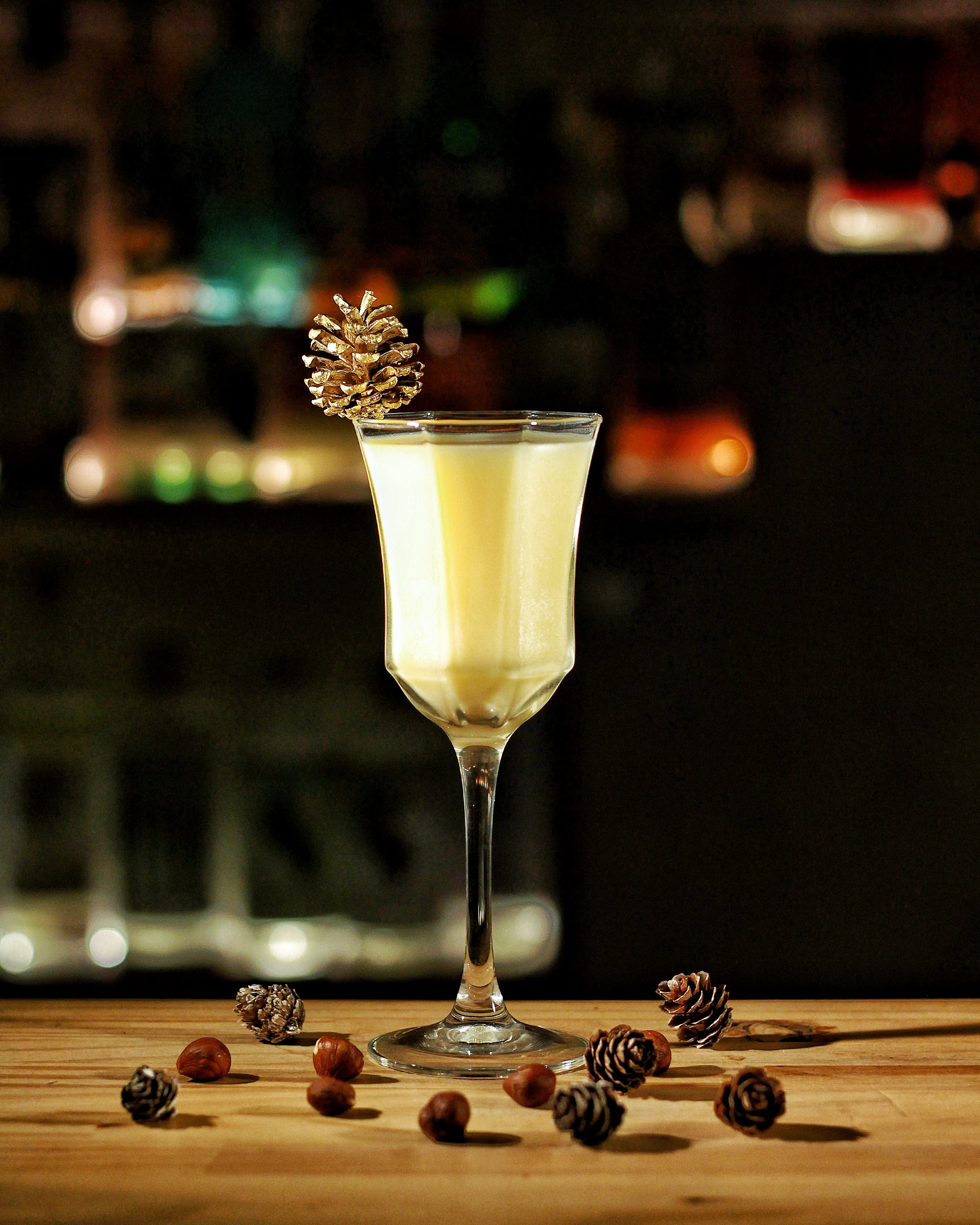 Instructions: Stir all with plenty of ice. Strain in a coupe or small wine glass. Garnish with a Pine.