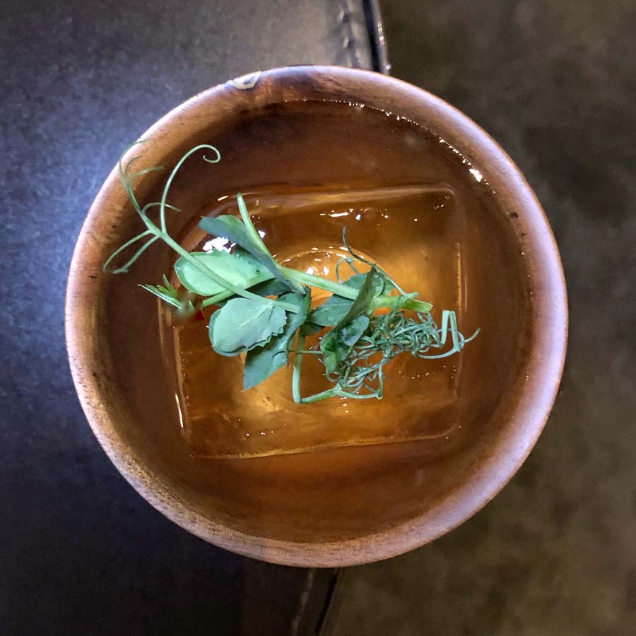 Même si nous avons essayé l’ensemble du menu qui s’inspire des chansons de Joséphine Baker, nous allons vous parler aujourd’hui de « Sur les toits de Paris » ; un cocktail à base de saké. Il est souvent difficile de trouver de bons cocktails réalisés avec du saké et ce dernier ne nous a pas déçu, au contraire, avec son petit goût asiatique. Au-delà du côté rafraichissant du saké, il y a un petit goût salé apporté par la touche de vinaigre japonais avec ce côté herbal du bambou et du calamus qui le complète, donnant au cocktail une touche umami. Le tout est enrobé par le léger goût sucré du muscat qui lie l’ensemble.