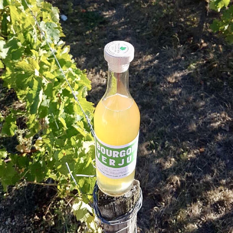 [vèrju] n.m. Acidifiant naturel élaboré localement à la main. Jus de raisin acide issu de vendanges précoces. Utilisé en cuisine ou au bar comme substitut écologique du citron. La définition donnée par Frédéric Bourgoin n’est pas dénouée de conviction : « le citron n’est pas aussi vert que l’on pourrait le croire. Importé aujourd’hui majoritairement d’Amérique du sud, le bilan carbone du citron est lourd. » Local, du moins si l’on habite pas en Amérique du sud, Bourgoin Verjus est élaboré au cœur du village de Tarsac en Charente (France) sur le vignoble familial situé à 9km à l’ouest d’Angoulême. Avec ses sous-sols du Crétacé (cénomanien moyen), le vignoble Bourgoin est planté à 100% de cépage ugni-blanc. La faible densité de plantation, d’environ 2750 ceps à l’hectare, permet à chaque cep de vigne de donner 6kg de raisins très acides, habituellement destinés à l’élaboration du cognac.