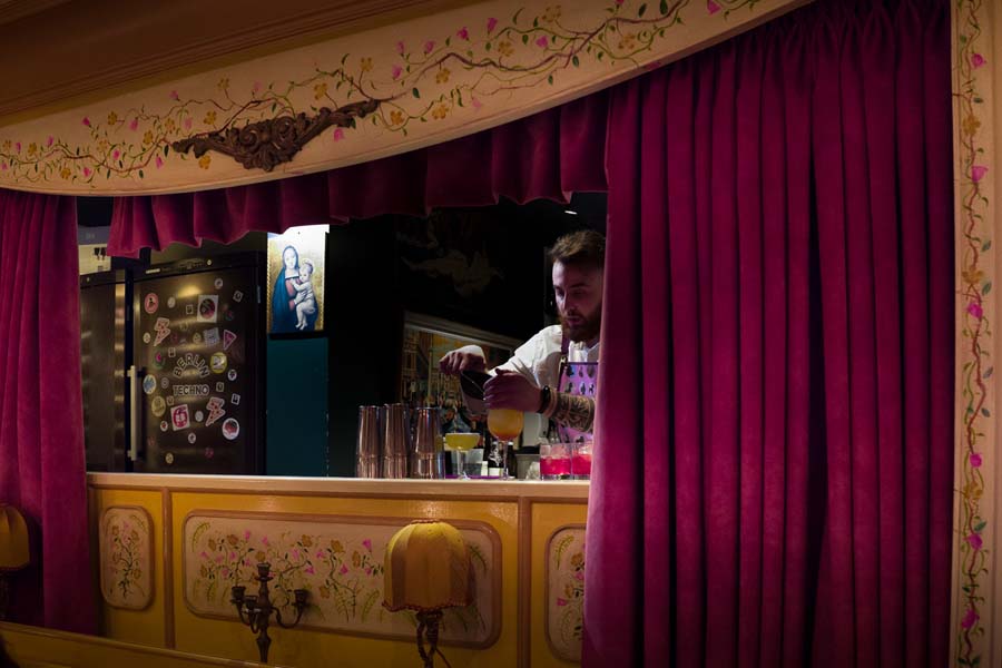 Dernier né de la galaxie Big Mamma, Libertino pose ses valises kitsch dans un ancien atelier de confection de chaussures, quartier du Faubourg Saint Denis. Imaginé par le Studio Kiki comme un vol direct pour Montepulciano, en Toscane, Libertino donne l’impression de débarquer directement dans la cuisine de cette ancienne maison de famille, entre l’énorme grill Josper et les pâtisseries au total look old school. La grande pièce centrale aux airs de jardin d’Eden, la salle Spettacolo aux 125m de drapés, le sous-sol ambiance full seventies entre moquette psychédélique et érotisme désuet ou encore le bar tournant aux allures de boule disco, on a l’embarras du choix pour goûter l’épaule d’agneau cuite 16 heures au four à braise, une bonne romaine (enfin!) et quelques cocktails. 44 rue de paradis 75010 Paris