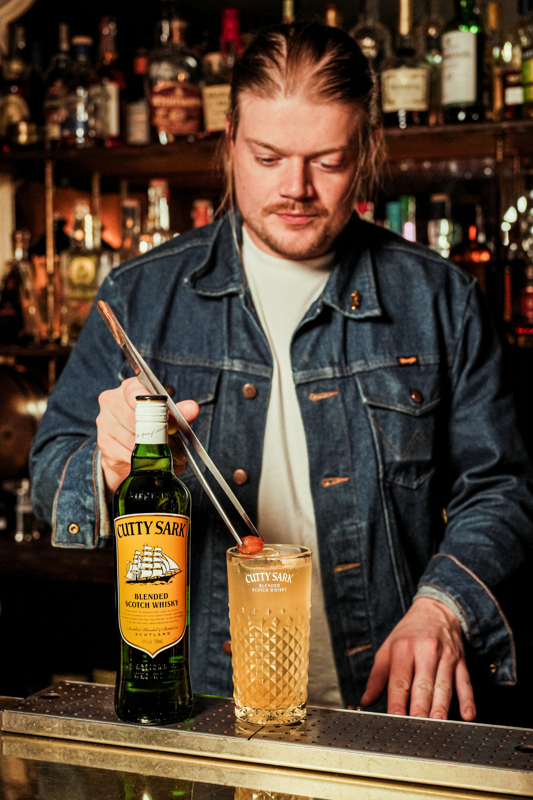 Pour imaginer sa version du Cutty Highball, Maxime Caillet a laissé son esprit voguer sur les routes maritimes qui ont façonné l’histoire du commerce international. Des mangues et kumquats venus d’Asie aux fûts d’amontillado des bodegas andalouses, son cocktail rend hommage à ce voyage aromatique qui relie les continents – et fait écho à l’emblématique voilier trois-mâts CUTTY SARK.