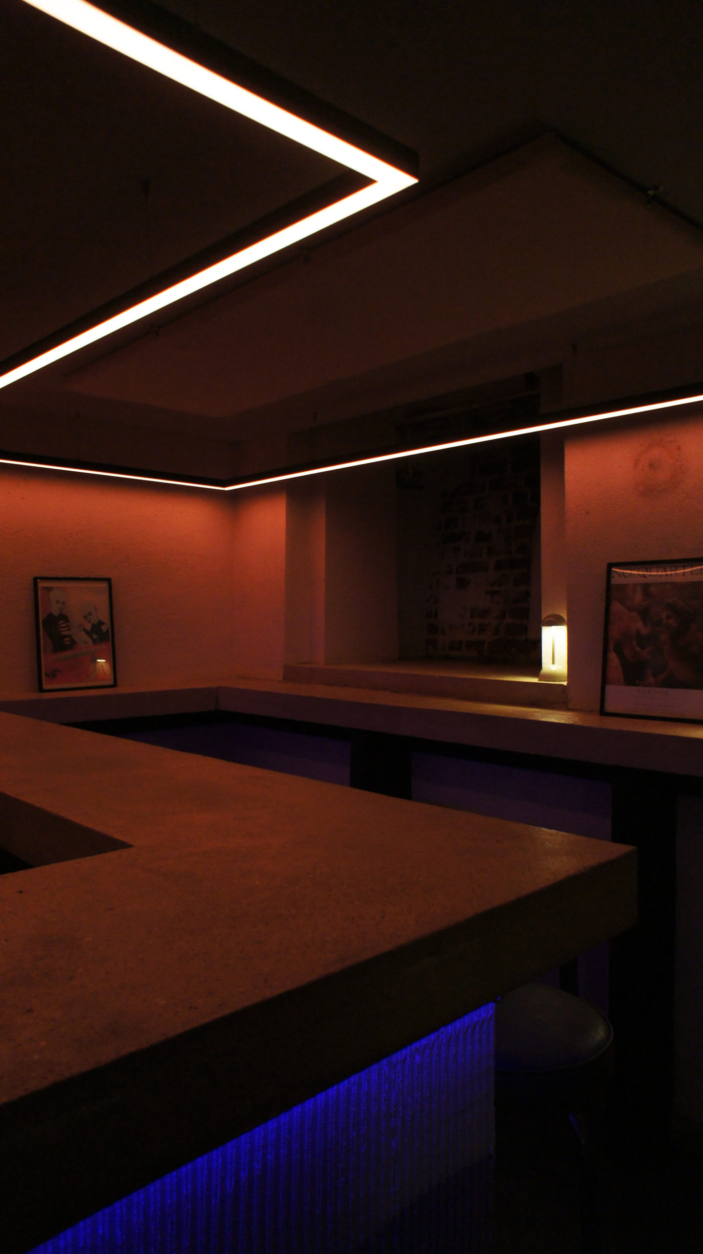 Le sous-sol du Dram abrite un bar à cocktails tamisé. Ici, l’innovation est au cœur de la carte, avec une offre centrée sur la saisonnalité et l’exploration gustative. Une salle multifonctionnelle, située plus loin dans le sous-sol, sert de laboratoire de recherche pour le développement de cocktails. Le soir, cet espace se transforme en une salle immersive de 12 places, où les invités pourront savourer des créations exclusives autour d’une grande table centrale.