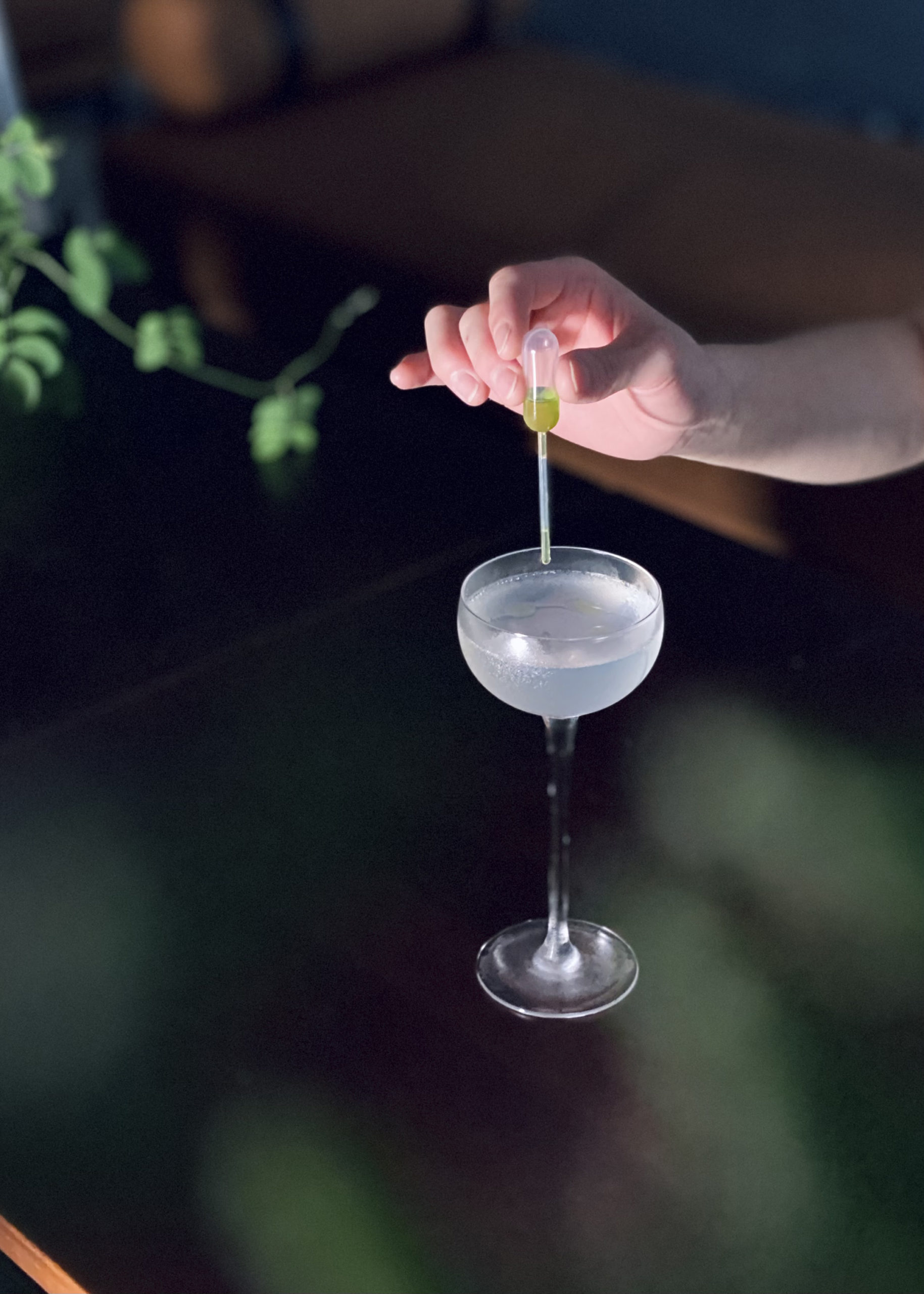 Komorebi: Do you also get mesmerised by the dappled sunlight shining through the gaps between the leaves? Especially when the breeze sways the branches and produce a soft, enchanting rustle of light and sound? That’s what we aimed to capture in a glass. The classic daiquiri recipe is infused with sweet pea, giving it a burst of both sweet and savoury notes with dominant green flavour notes. The result is a cocktail that is both refreshing and intriguing at the same time. On top of that, sweet pea essence is concentrated and dropped onto the surface of the cocktail, perfectly mimicking the changing dappled light of its inspiration.