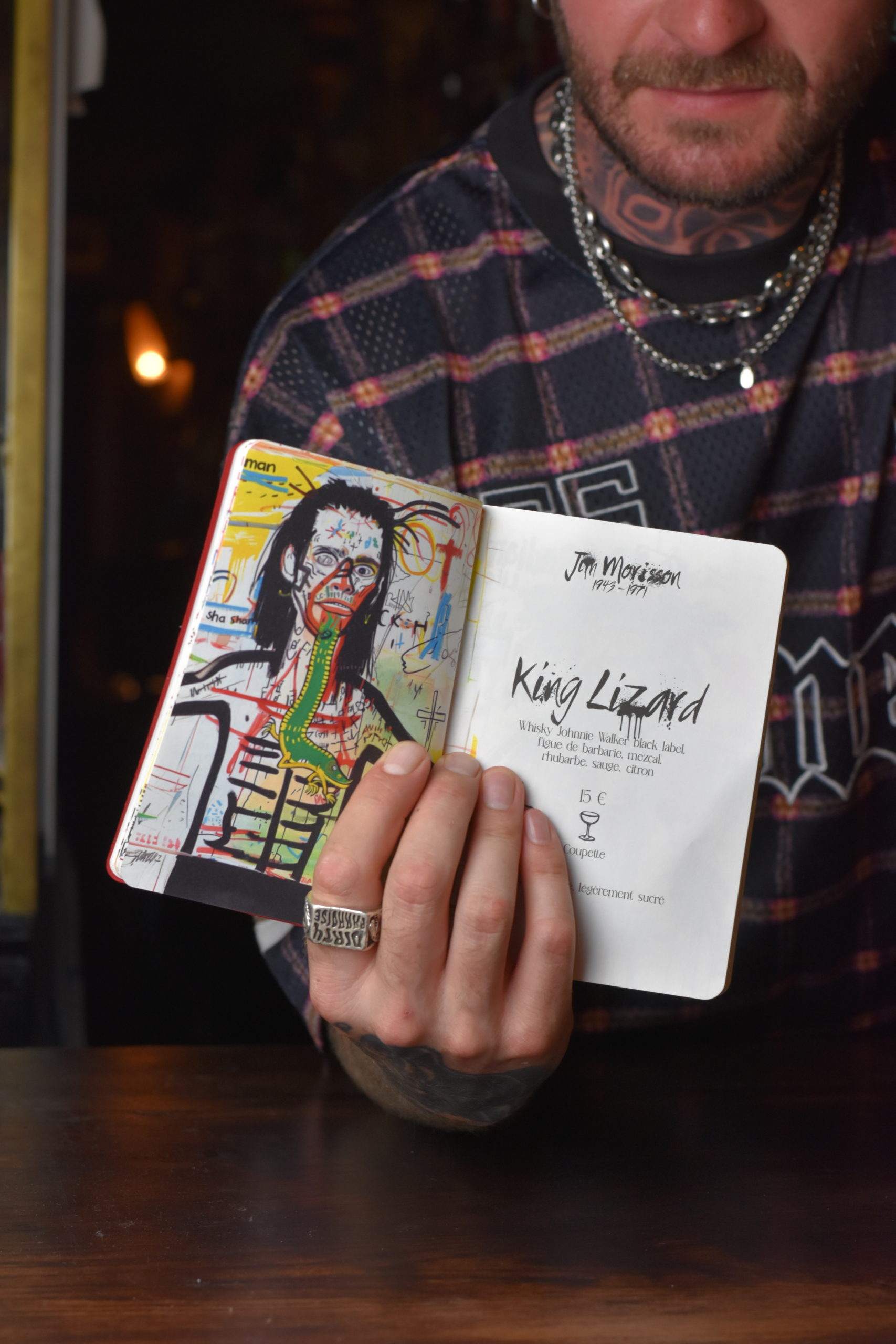 King Lizard, évocation de Jim Morrison, joue la tension entre whisky, figue de barbarie, rhubarbe et sauge. Plus audacieux encore, Same Old Shit, hommage à Basquiat, mélange cognac, rhum, champagne, melon et coriandre dans une composition clarifiée au lait de soja. Kurt Cobain se retrouve dans Pennyroyal Tea, distillat mentholé au pennyroyal et liqueur nordique, éthéré comme un cri sourd. Enfin, Back to Black cocktail amer et acide, célèbre Amy Winehouse à travers un accord de gentiane, fraise, amontillado et vinaigre d’IPA gazéifié.