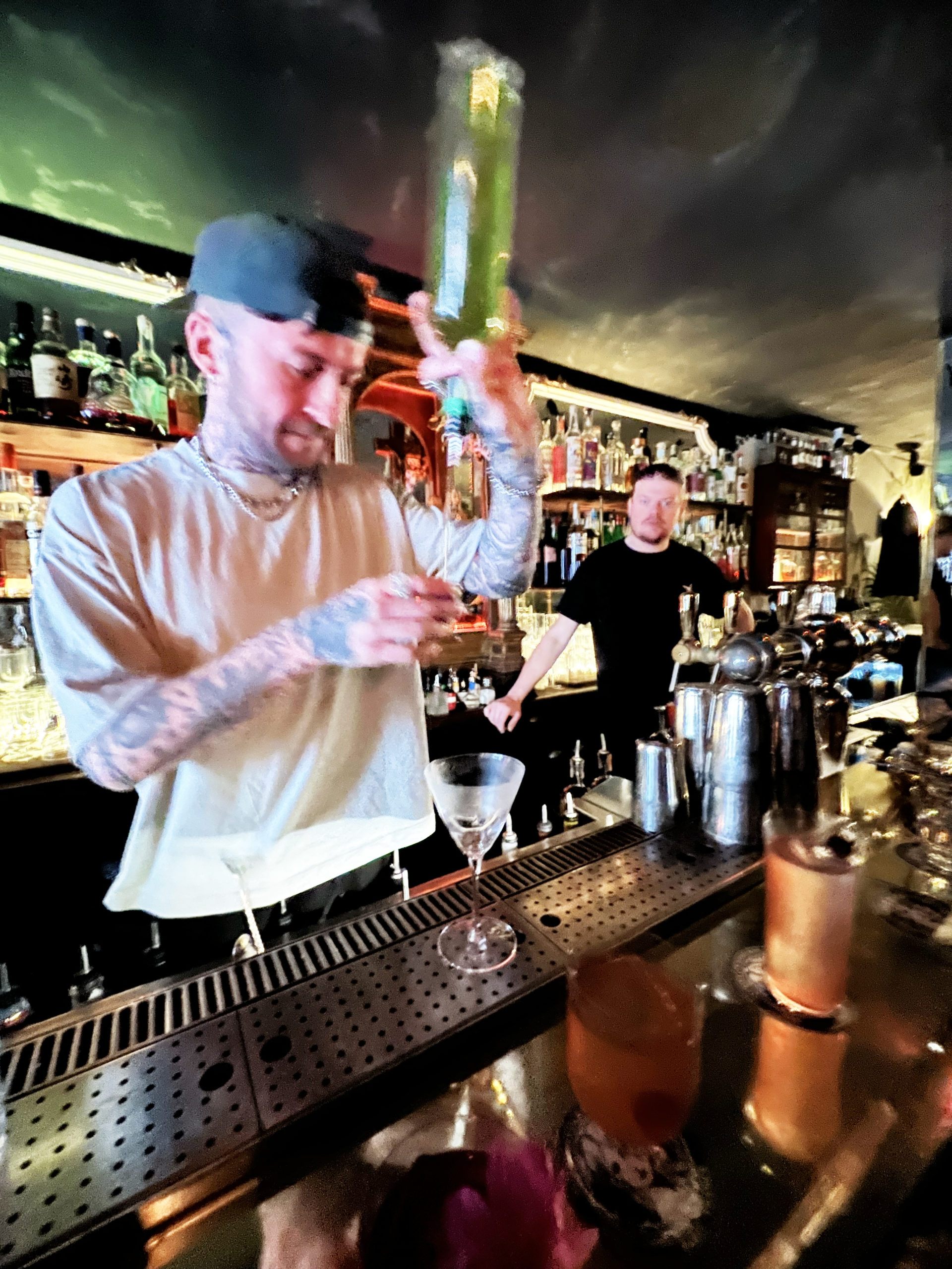Derrière cette nouvelle signature singulière, un duo complémentaire : Maxime Caillet et Charly Clain. Tous deux barmen aguerris, ils incarnent deux facettes d’une même exigence. Maxime, biberonné à l’imaginaire du cinéma, compose des cocktails narratifs, riches en textures et en ruptures de rythme. Son approche est cinématographique, presque chorégraphiée.