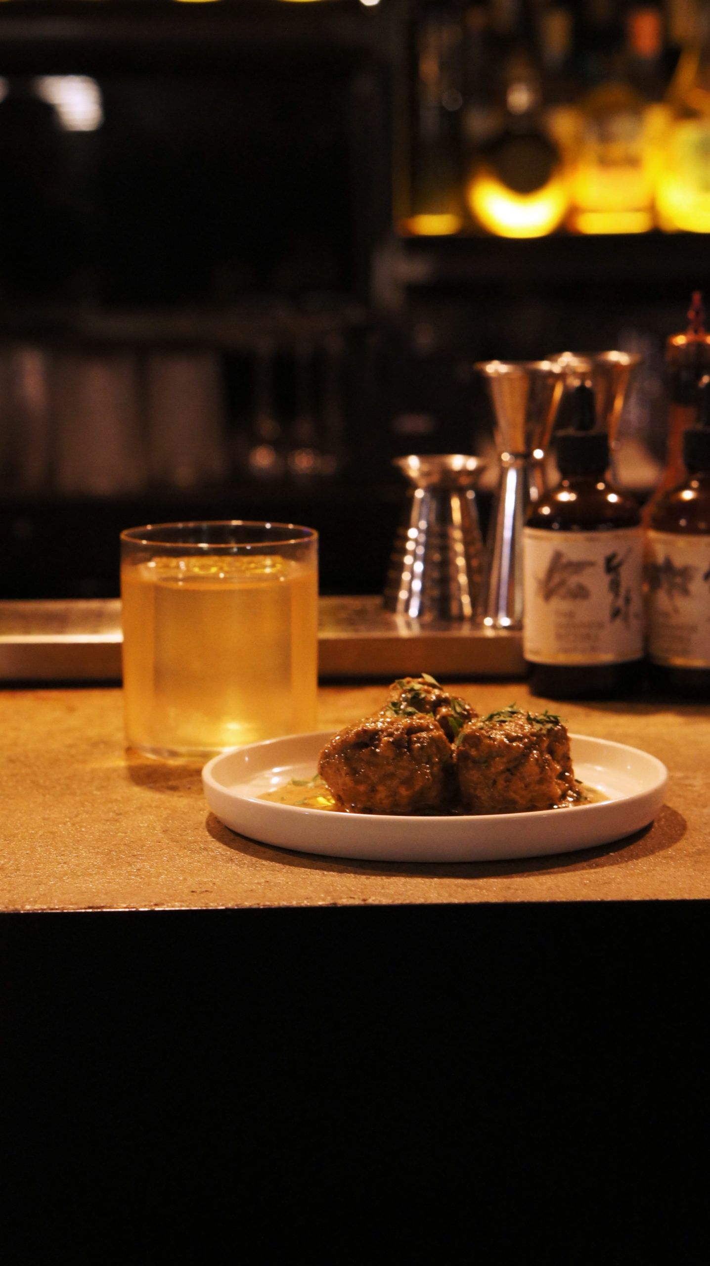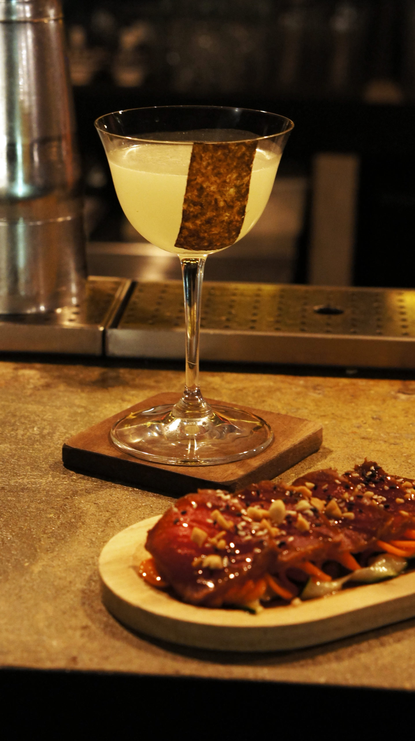 Slim travaillant dans l’industrie en France et à l’étranger depuis 15 ans a plus d’une flèche à son arc, il est aussi le chef derrière les excellents tapas servis au bar. Entre temps le bar s’est retrouvé sans head bartender et il a dû chercher en dehors du territoire pour trouver sa perle rare, Oliver Eardley. Oliver a donc traversé la manche et rejoint le bar début 2023. Auparavant, il a travaillé au Savoy et à Sketch à Londres et shake depuis une décennie. Il a aussi remporté le concours UKBG X JSS Great Honkaku Shochu & Awamori en 2022, a été finaliste des Trophées du Bar 2023 et lauréat du Concours Coquerel Calvados 2023. Slim et Oliver forme équipe de choc qui aime expérimenter en cuisine et derrière le bar tout en prenant un virage food pairing. Le nouveau menu se compose de 12 cocktails et tapas associés mais qui peuvent bien entendu être aussi servis séparément.