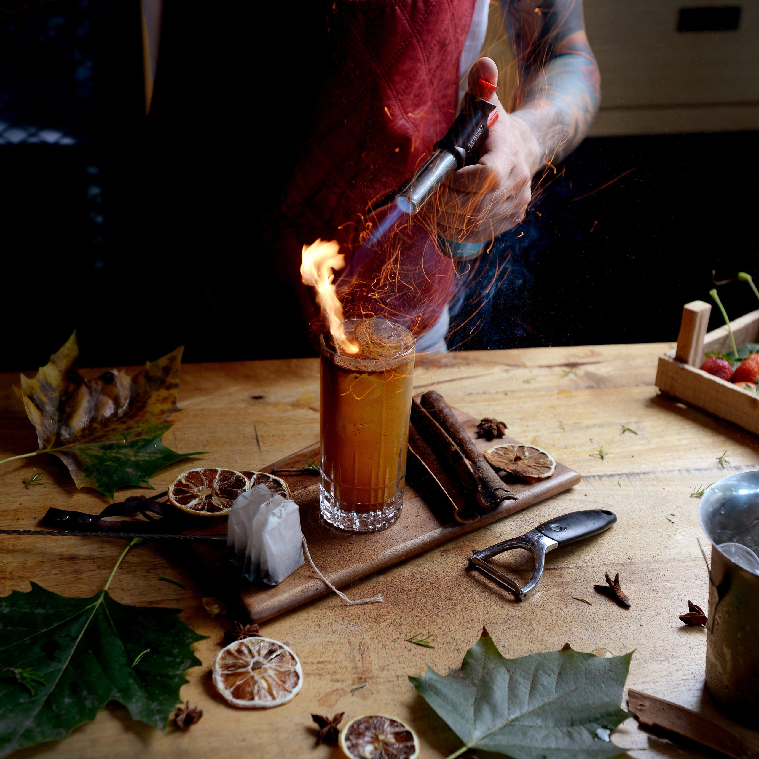 Oui, à l’âge de 15 ans, j’ai postulé pour un emploi dans un grand resort. Ils ne me prenaient pas au sérieux mais j’ai passé les tests haut la main et j’ai été embauché. Après 2 mois, j’ai été promu head bartender. Le problème est que je n’avais pas de mentor à qui poser de questions et qu’en tant que head bartender j’étais celui qui donnait les réponses. J’ai donc continué à regarder des vidéos de bartending. J’ai aussi beaucoup collaboré avec des chefs, appris à travailler avec des herbes, la clarification etc… Puis j’ai été consultant pour l’ouverture d’un bar, j’ai réalisé le menu et je me suis occupé de la formation. Par la suite j’ai été consultant pour d’autre endroits et en parallèle je m’entrainais au flair, je faisais beaucoup de fire shows, je suis devenu ‘the guy that does flairing’. J’ai d’ailleurs participé à plusieurs compétitions mais je n’ai jamais terminé premier.