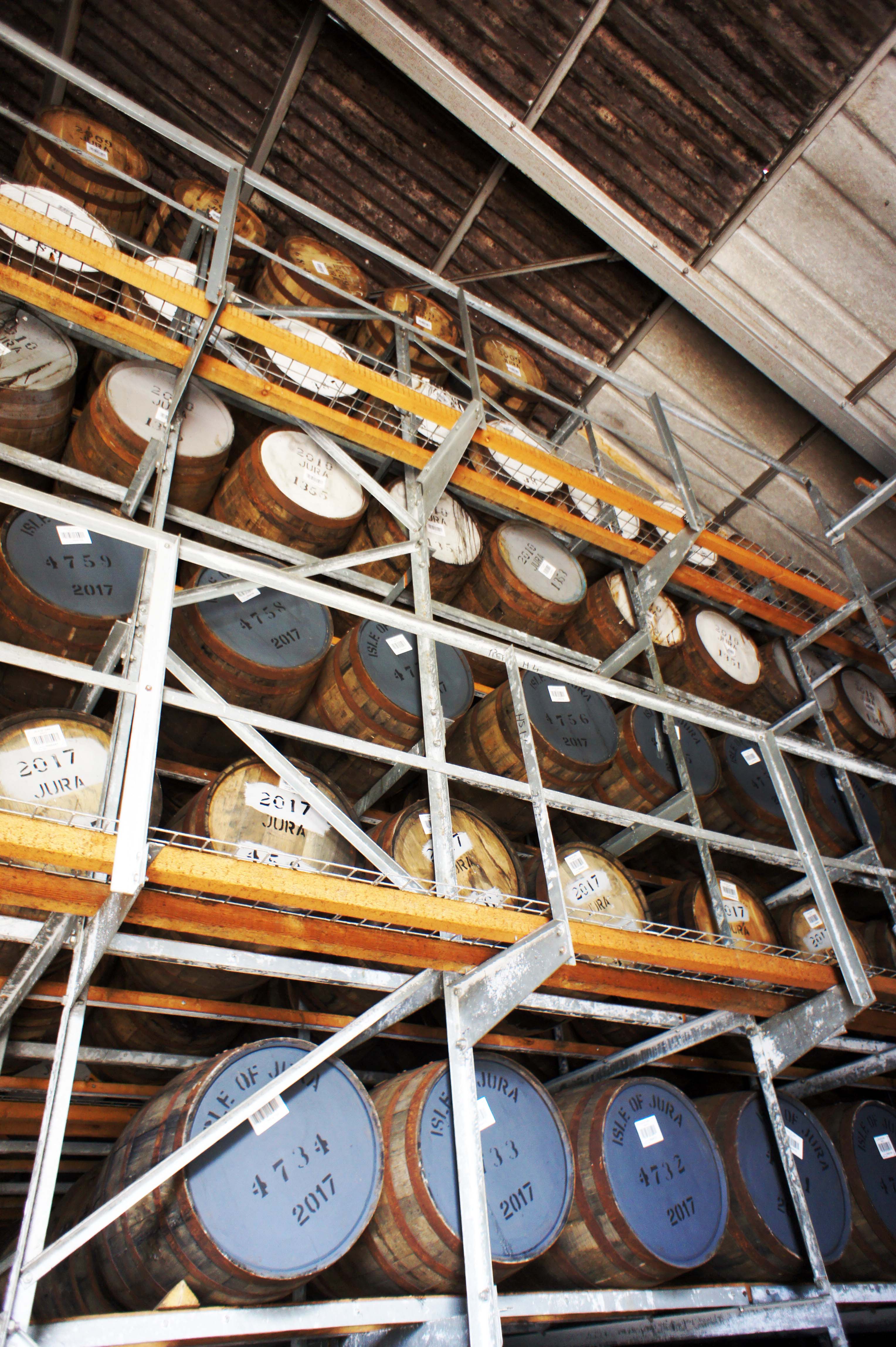 La « bière » est distillée une première fois en wash stills -larges et plats- pour un distillat à 23% puis une repasse en spirit stills -plus ronds et élancés- pour atteindre un distillat à 71%. Les alambics de Jura sont les deuxième plus hauts d’Ecosse (24 500L), ce qui confèrent à la distillerie des whiskies doux et suaves.