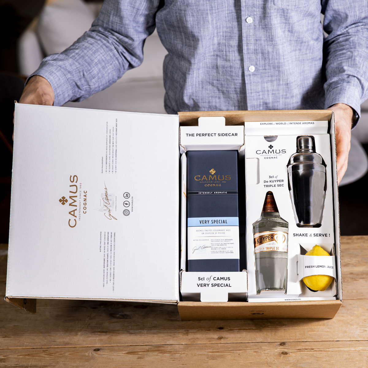Le Sidecar est l’un des cocktails à base de Cognac les plus emblématiques de l’histoire de la mixologie, créé au Harry’s New York Bar à Paris en 1919 et depuis toujours parmi les cocktails les plus populaires dans les meilleurs bars du monde. Un cocktail sidecar équilibré nécessite un savoir-faire désormais accessible grâce au coffret Coffret Sidecar par Camus. Ce set contient une bouteille de Very Special Camus, une bouteille de triple sec, un citron frais, un shaker et LA recette pour réaliser le meilleur des Sidecar à la maison ! 59€ • camus.fr