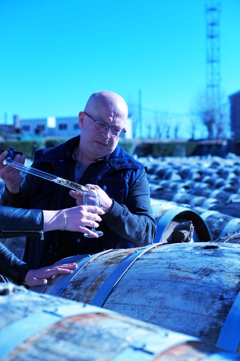 Ces centaines de tonneaux sont ainsi exposés aux éléments naturels et l’influence de quatre saisons durant lesquelles les vins vont devenir plus concentrés, grâce à une Part des Anges importante (plus de 6%), reproduisant les conditions subies autrefois par les vins sur le pont des grands navires à voiles lors de longues traversées. Le travail du temps sur les fûts est impressionnants, éprouvant fortement le bois des douelles malgré l’arrosage quotidien.