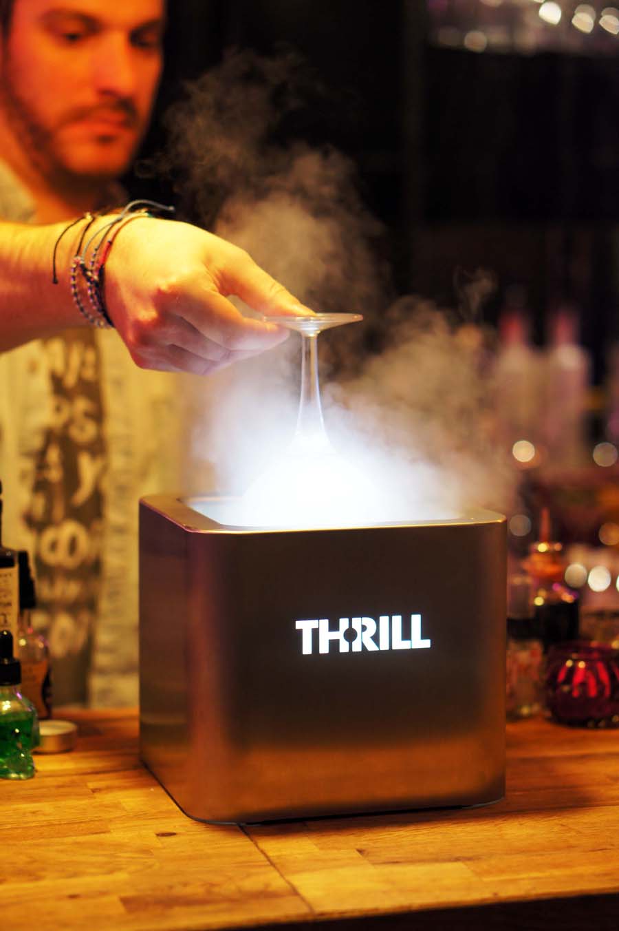 Les produits Thrill sont destinés aux restaurants, caves à vin, cafés, bars, hôtels, brasseries et cateting. Thrill peut être utilisé rapidement avec des verres et récipients en verre ou en plastique alimentaire de toutes tailles. Idéal avec son faible coût de gestion -3 à 6 centimes par verre en CO2 E290- et sa facilité de transport avec sa batterie longue durée, il est décliné en 5 produits pour s’adapter à tous vos établissements, à l’utilisation que vous voulez en faire et à la place dont vous disposez. La gamme se compose de Thrill Vortex F1, Thrill Vortex LCD ainsi que leur version plus compacte Thrill Cube et Thrill Cube LCD et une version encastrable Thrill Vortex S.B.I. Ces produits constituent une petite révolution dans la façon de rafraichir les verres.