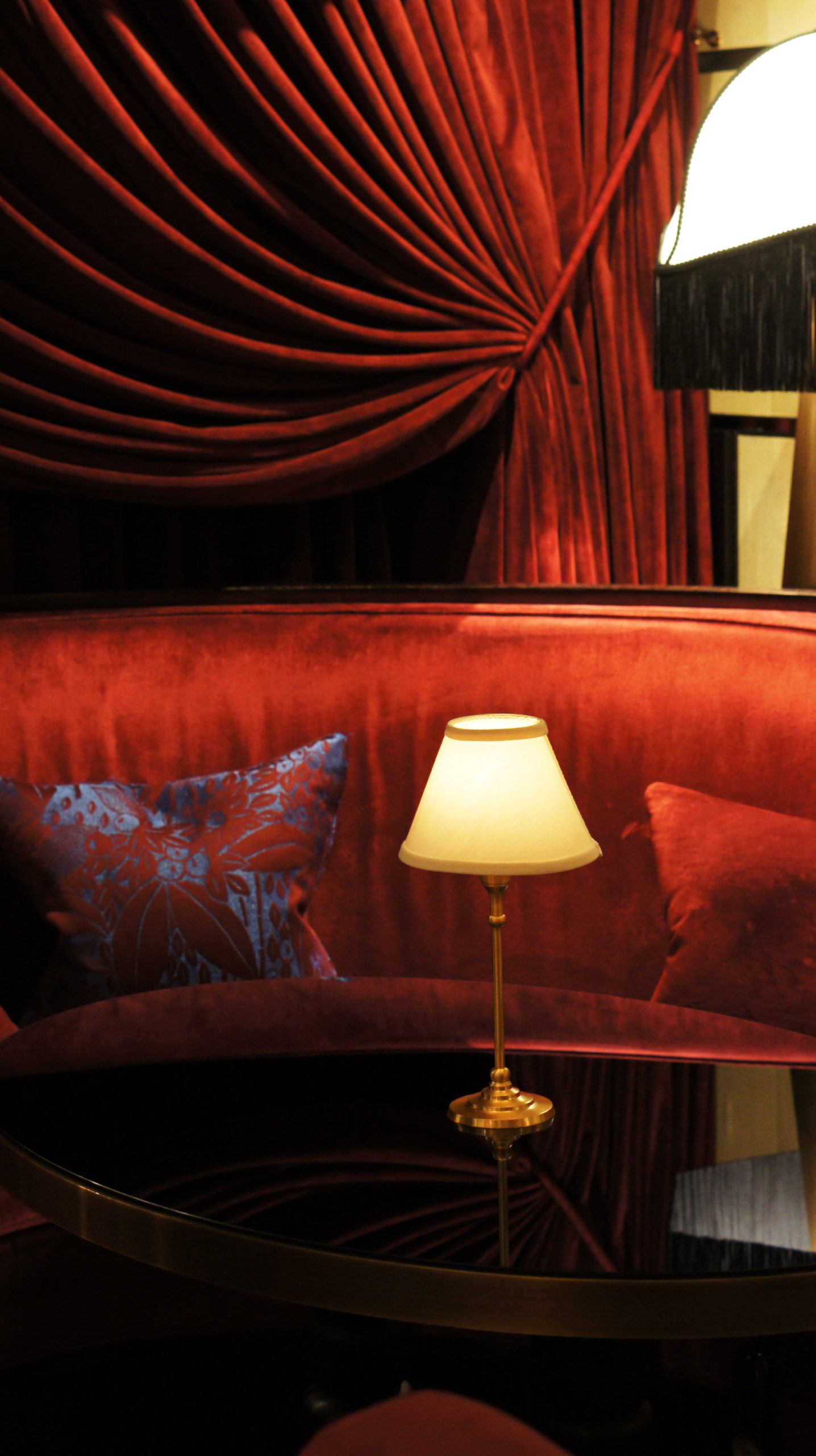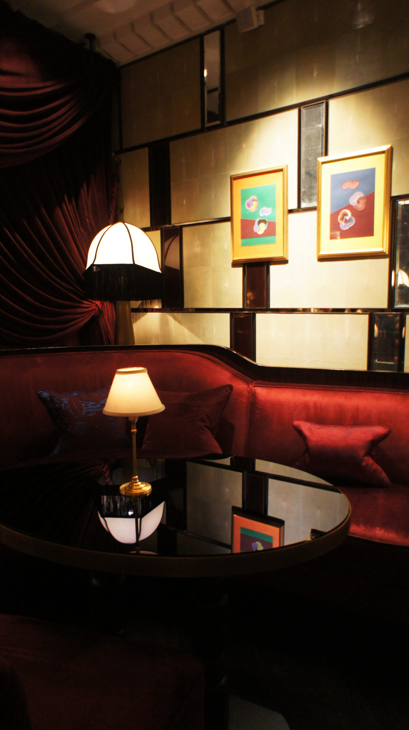 Situé au rez-de-chaussée du Corinthia London, le Velvet a été conçu pour rappeler le faste et la splendeur des bars à cocktails de l’âge d’or du XXe siècle. Les intérieurs, imaginés par le célèbre David Collins Studio, sont un mélange somptueux de meubles tapissés de velours rouge et bleu royal. Les rideaux épais de velours confèrent une atmosphère mystérieuse et glamour, renforcée par des miroirs convexes et un éclairage somptueux. Au centre, une majestueuse cheminée en marbre est encadrée par des œuvres d’art commandées à Robson Stannard, qui s’intègrent parfaitement à l’ambiance du lieu.