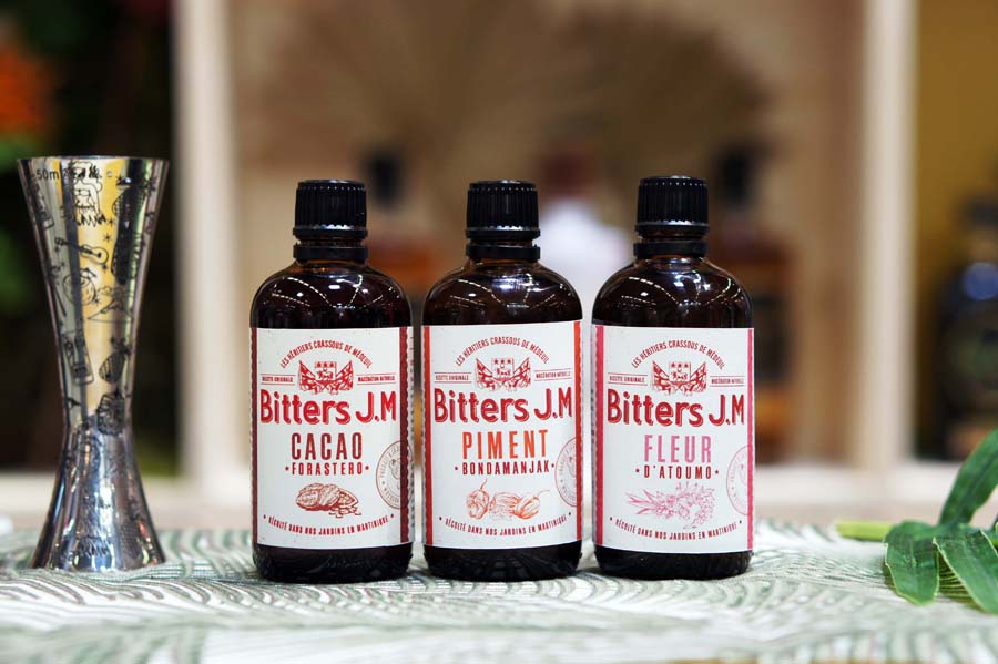 J.M lance en septembre prochain trois nouveaux bitters : le Bitter Cacao Forastero, issu de la macération de fèves de cacao torréfiées, cafés, branche de salsepareille, zeste de citron vert, gousse de vanille et bâtons de cannelle, le Bitter Fleur d’Atoumo, issu de la macération des fleurs d’Atoumo, de fleurs de Moringa, de zeste de pamplemousse et de baies roses notamment et le Bitter Bondamenjak, issu de la macération de piments Bondamanjak, de piments végétariens et de poivre vert.